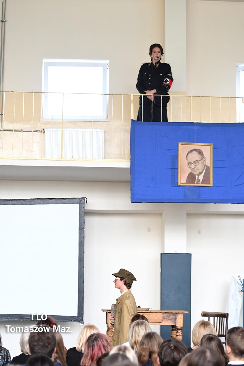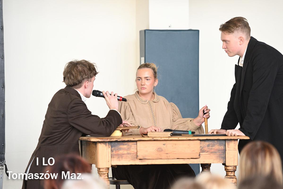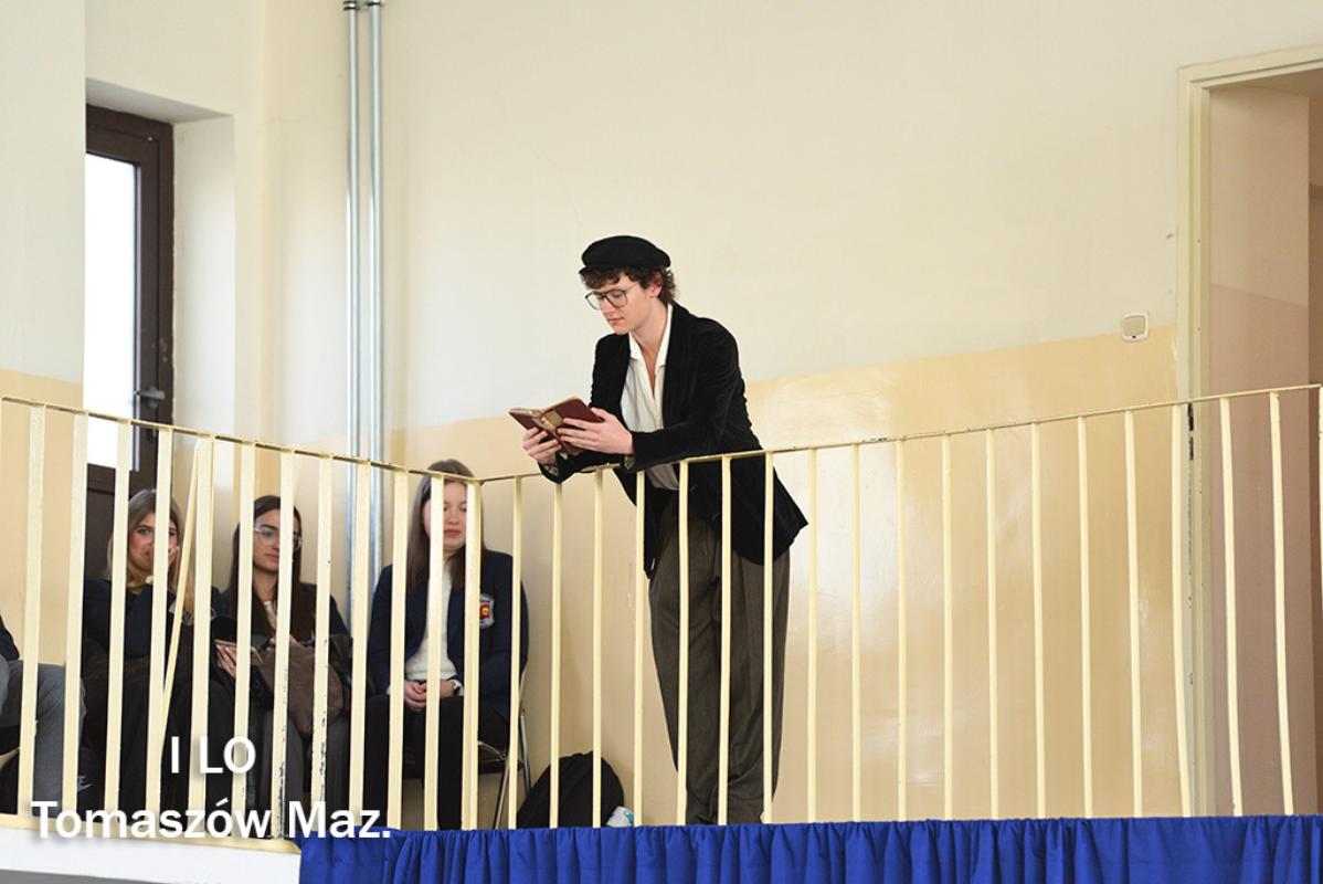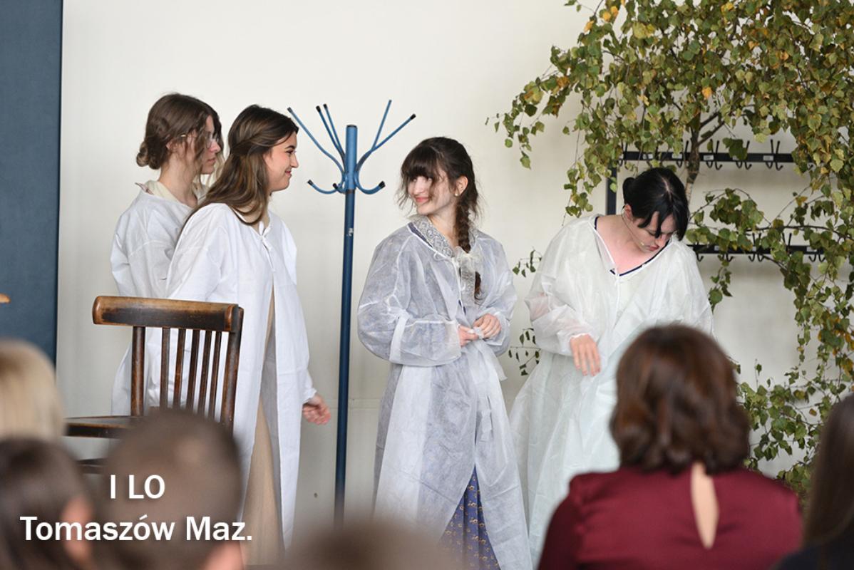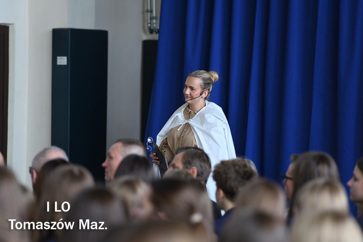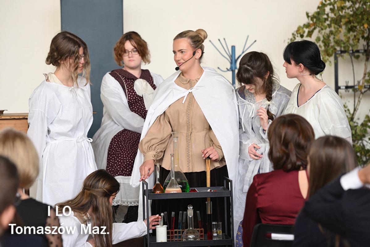 O losach, sukcesach i misji szkoły opowiedziała Pani Dyrektor Ewa Męcina. Historii szkoły był poświęcony program artystyczny składający się z dwóch bloków. Pierwszy przygotowany pod opieką profesor Anny Kowalskiej - przypomniał dzieje szkoły. Wystąpili: Romana Harasimowicz, Natalia Kowalewska, Franciszek Pecyna, Natalia Wolak, Ewa Tys, Martyna Pękala. Występ dopełnił chór pod batutą profesora Marcina Saktury. Drugim był spektakl „Halinka” przygotowany przez dr Justynę Biernat. Scenariusz pokazywał autentycznych uczniów w kontekście historii I LO. Wystąpili: Julia Grzejszczyk, Julian Dobrzyński, Jakub Grzyb, Julia Pabianek, Mateusz Majka, Pola Buczyńska, Paweł Goździk, Kornelia Kawecka, Magdalena Rytych, Zuzanna Stępień, Oliwia Włodarczyk, Wiktoria Chudzik.