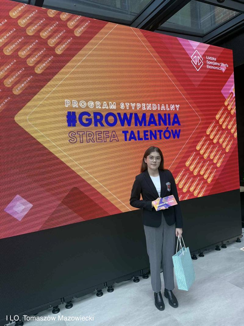 Z ogromną radością informujemy, że Julia Wrześniewska z klasy 4D otrzymała stypendium w programie GrowMania Strefa Talentów organizowanym przez Łódzką Specjalną Strefę Ekonomiczną.