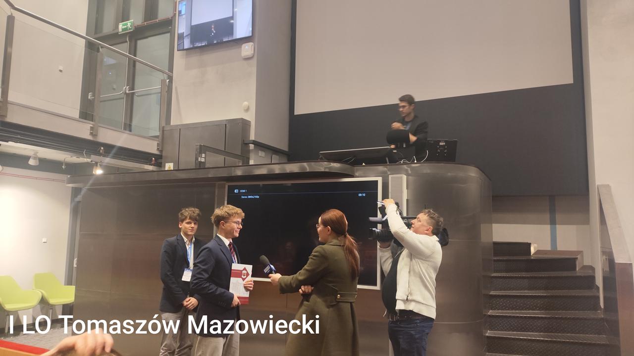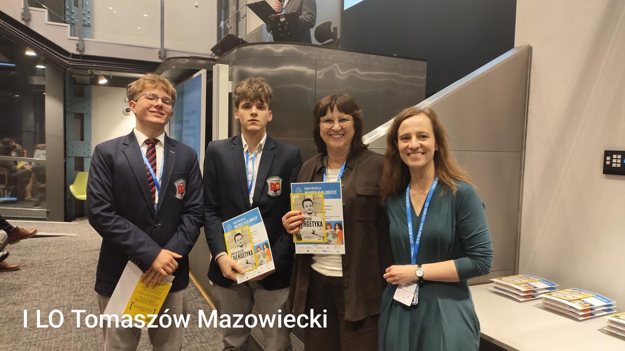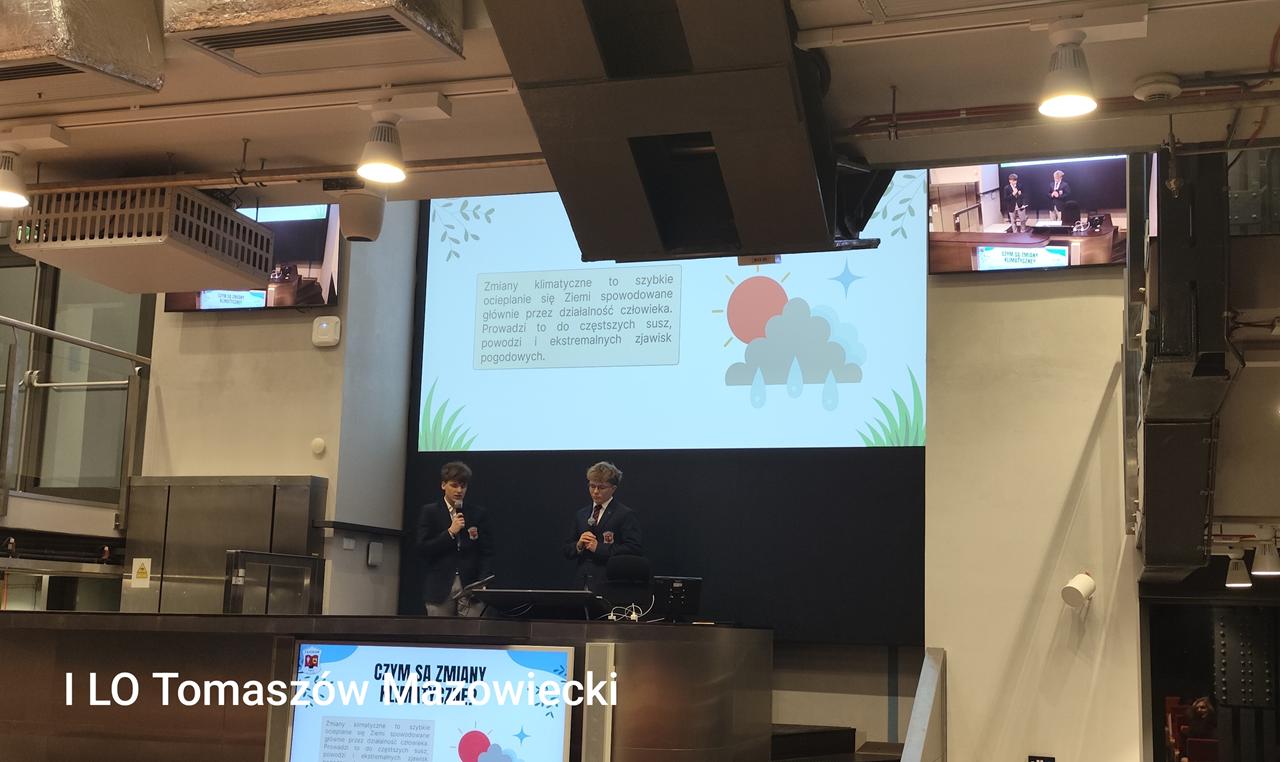 Jakuba Wiecha pt.:" Transformacja energetyczna Polski". Kolejnym punktem konferencji był panel, w czasie którego uczniowie prezentowali efekty swojej pracy. Nasza szkołę z referatem o wpływie zmian klimatycznych na zasoby wodne reprezentowali Michał Śliwiński oraz Piotr Olszański, uczniowie klasy 3e.