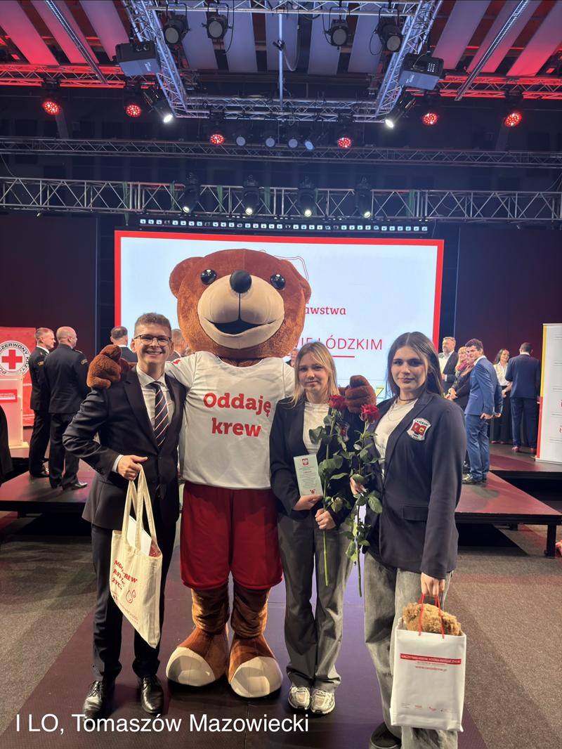 Dziś uczniowie klasy 4D – Kacper Kszczot, Amelia Rusek oraz Łucja Szydłowska – wzięli udział w gali z okazji 90-lecia Polskiego Czerwonego Krzyża, podczas której wręczono nagrody w konkursie „Młoda krew ratuje życie”.