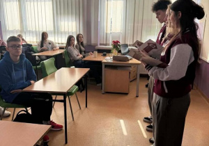 Uczniowie I Liceum Ogólnokształcącego odwiedzili szkoły podstawowe, gdzie promowali swoją szkołę i poznali ósmoklasistów, odpowiadając na ich pytania.