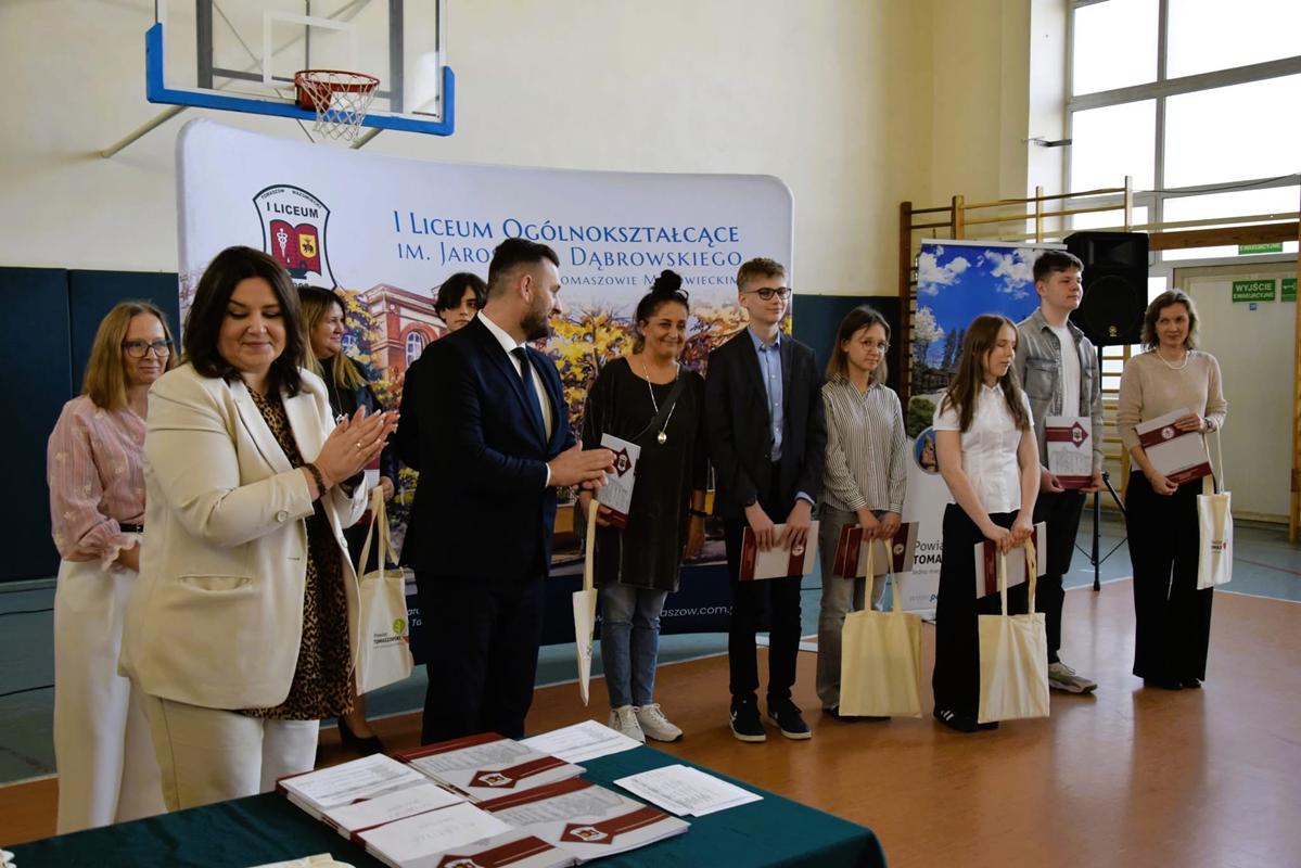 17.04.2026 r. w I LO im. Jarosława Dąbrowskiego w Tomaszowie Mazowieckim obyła się uroczystość podsumowania konkursów powiatowych organizowanych pod patronatem Starosta Powiatu Tomaszowskiego Dariusza Kowalczyka. Zaproszeni zostali wszyscy nagrodzeni i wyróżnieni uczniowie wraz ze swoimi nauczycielami.