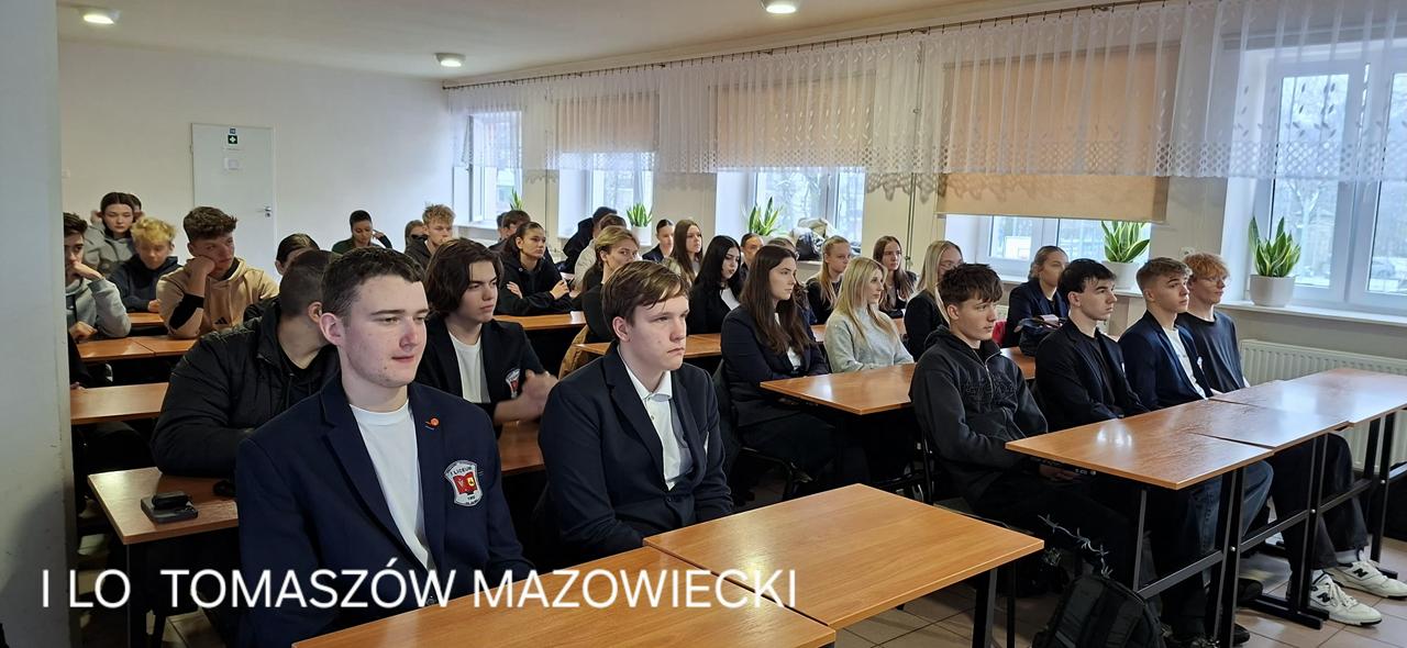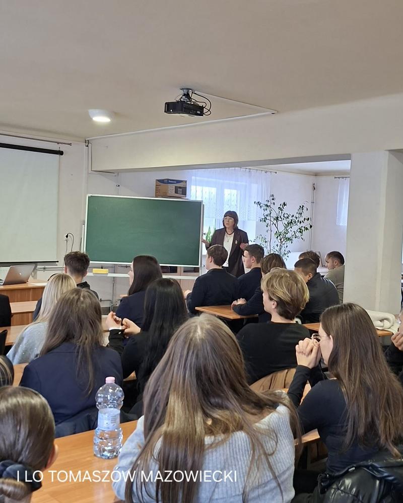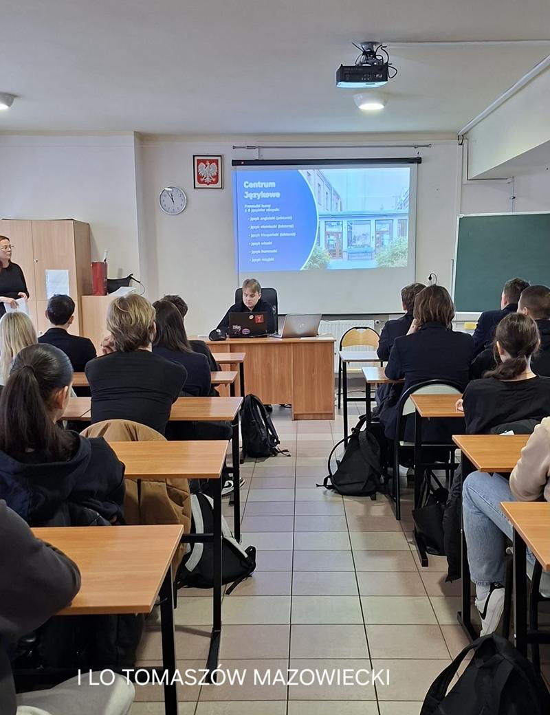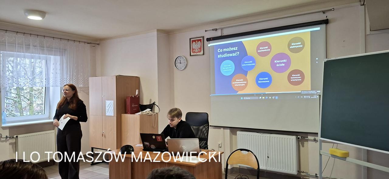 Dnia 26 listopada 2025r. klasy4A, 4E, 4G uczestniczyły w spotkaniu z przedstawicielami Politechniki Łodzkiej, Panią dr Aleksandrą Jastrzębską z Wydziału Mechanicznego i Panem Ludwikiem Lorkowskim, reprezentującym studentów. Uczniowie mieli możliwość zapoznania się z oferowanymi kierunkami studiów, zasadami rekrutacji, przykładowymi projektami realizowanymi przez uczelnię. Goście opowiadali o możliwościach rozwoju naukowego, ale tez o nowoczesnych budynkach, zapleczu technicznym, wyposażeniu, akademikach i życiu studenckim. Uczniowie dowiedzieli się o innowacyjnych projektach realizowanych w PŁ. Spotkanie z pewnością zainspiruje wielu uczniów do planowania edukacyjnej przyszłości i odkrywania swoich pasji.