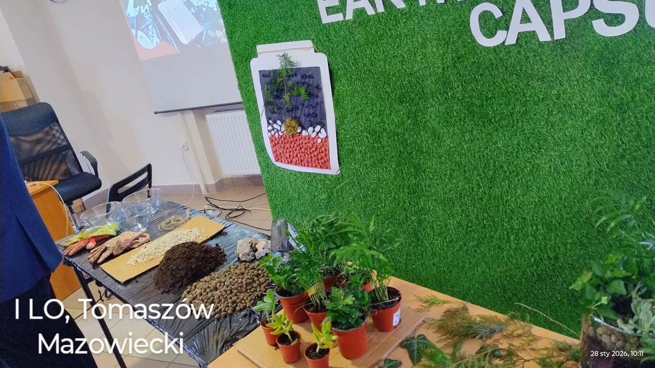 Tematyka wystąpienia prelegentki korespondowała z prezentacją szkolnego miniprzedsiębiorstwa "Earth capsule", czyli ręcznie robione ekosystemy w słoikach.