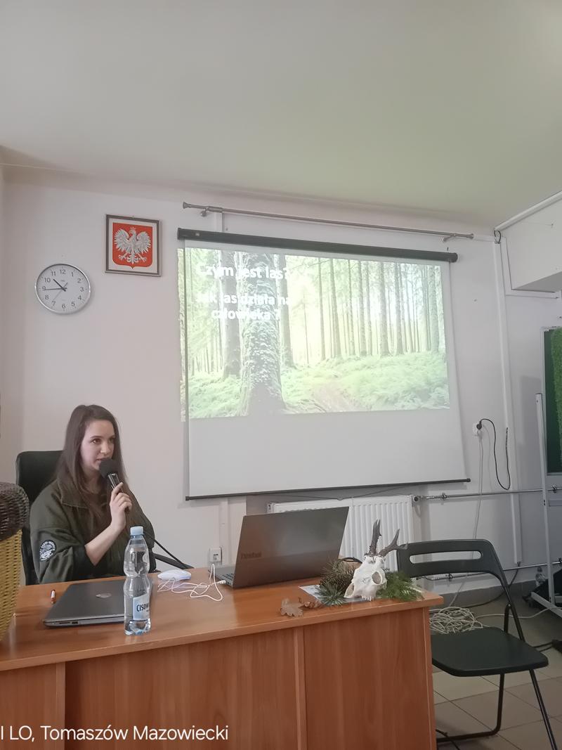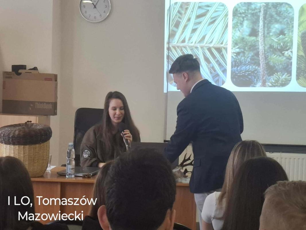 28.01.2026 r. uczniowie klas pierwszych wysłuchali prelekcji wygłoszonej przez panią Julię Wejman z nadleśnictwa w Spale. Dotyczyła ona roli lasów w środowisku przyrodniczym. Młodzież mogła m.in. utrwalić wiedzę na temat iglastych drzew, a także zwrócić uwagę na wpływ omawianego biosystemu na różne zmyły.