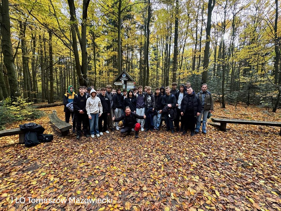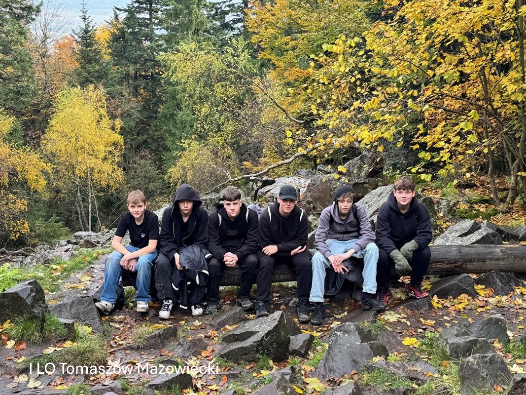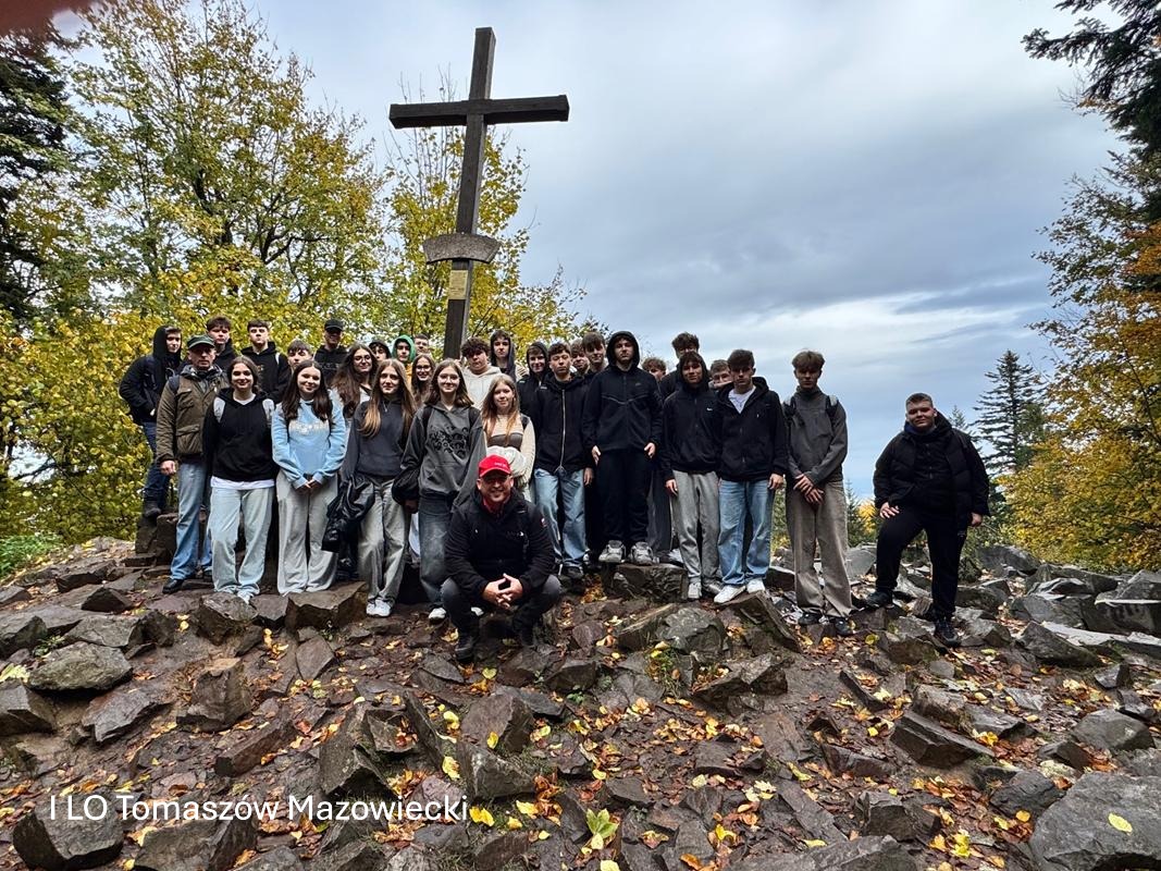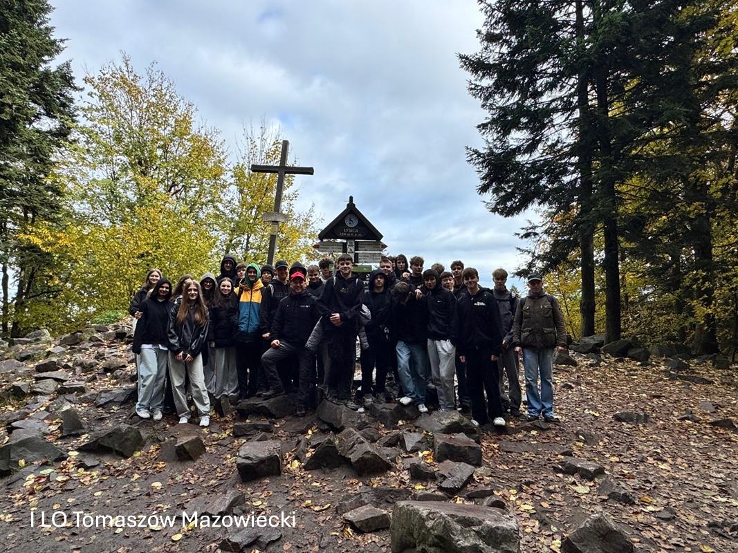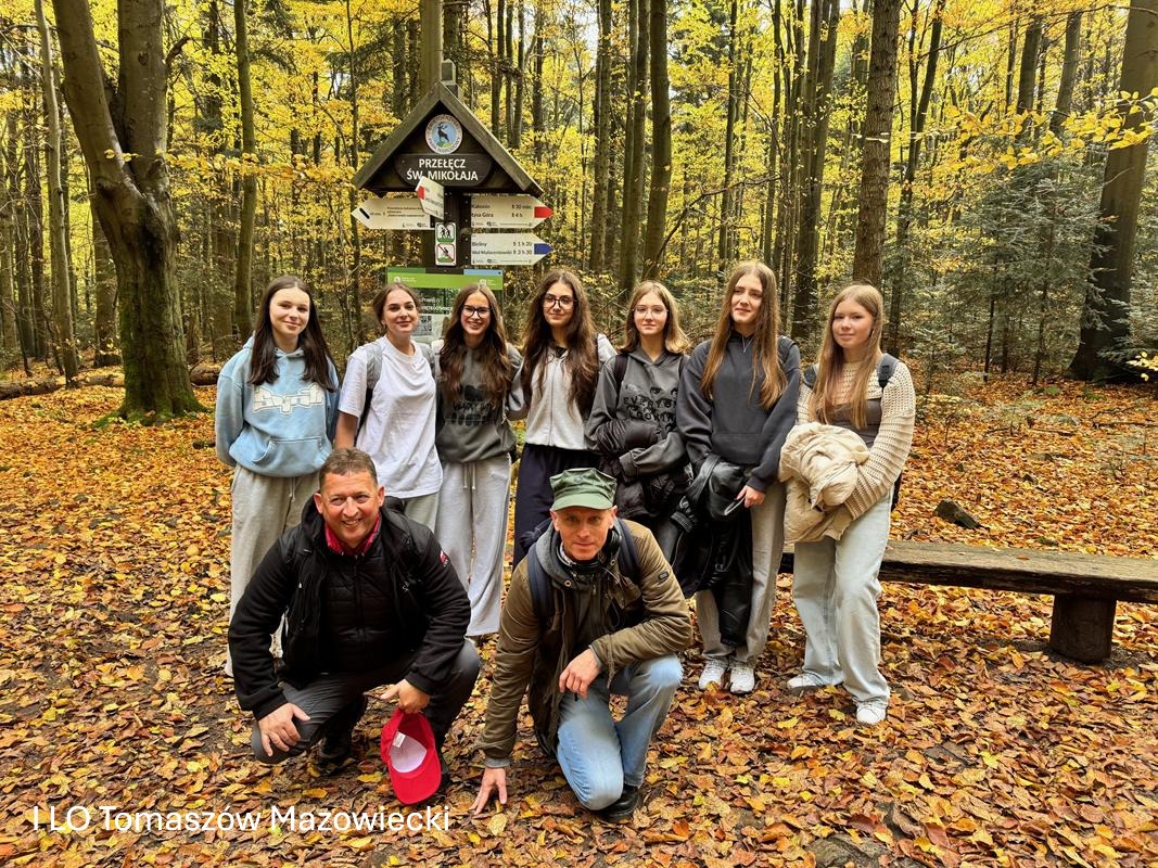 Uczniowie klasy 1A pod opieką wychowawcy klasy - Dariusza Jachimowskiego oraz nauczyciela informatyki - Emila Chorążewskiego mieli okazję odkrywać uroki jednego z najstarszych pasm górskich w Polsce – Gór Świętokrzyskich. Wyprawa rozpoczęła się w malowniczym Kakoninie, skąd wyruszyliśmy szlakiem prowadzącym na Łysicę – najwyższy szczyt tego regionu. Wędrówka, choć momentami wymagająca, dostarczyła wielu pięknych widoków i satysfakcji z dotarcia na szczyt. Po drodze podziwialiśmy bogactwo jesiennej przyrody, barwne lasy oraz charakterystyczne gołoborza, które są wizytówką tych gór oraz wsłuchiwaliśmy się w opowiadane przez wychowawcę liczne legendy związane z tym wyjątkowym regionem.